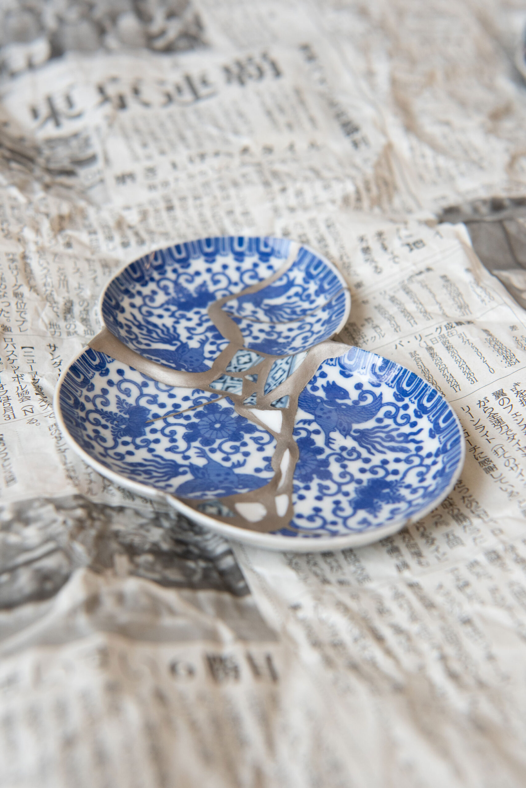 Cette technique de réparation utilise les mêmes matières que le kintsugi mais assemble différents fragments. Réparer les pièces de cette manière est utile lorsqu’il manque des fragments par exemple. Comparé au kintsugi classique, le yobitsugi demande plus de créativité.