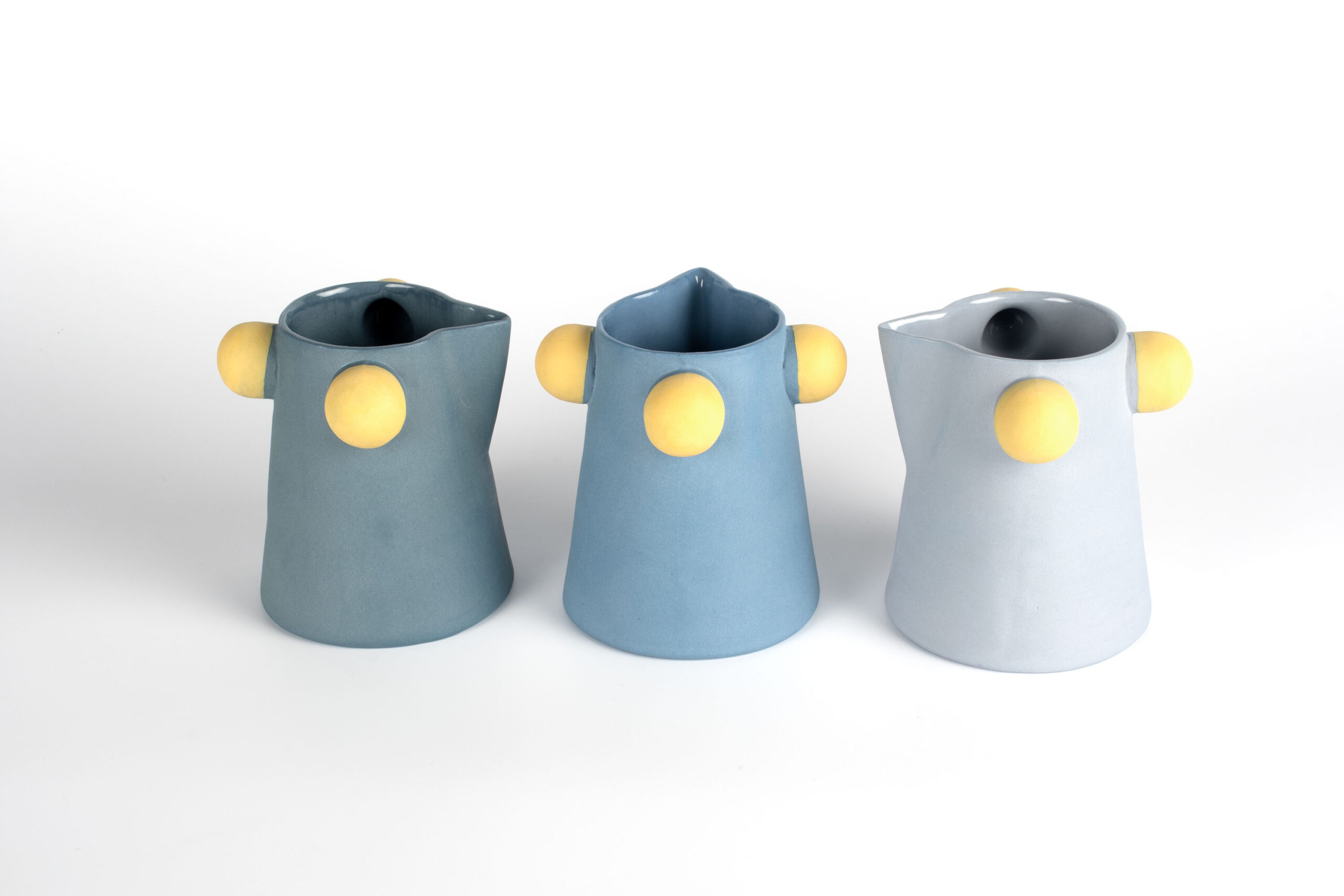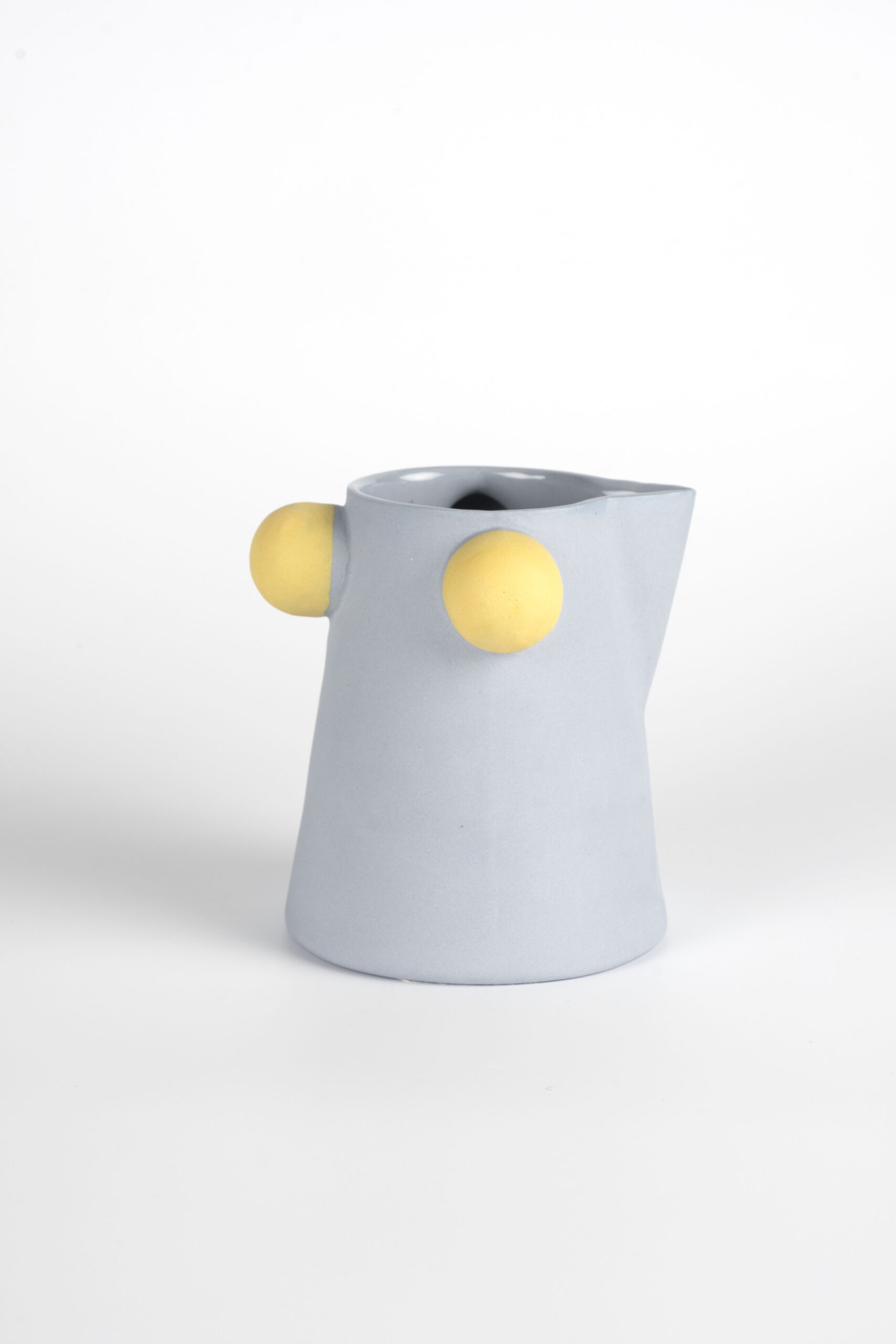 Zénith, Aurore et Pluie sont les noms des pichets réalisés dans le cours de conception d’objets au CEPV. En m’inspirant du lac et de ses bouées jaunes, je crée cette forme joueuse en porcelaine coulée. Différentes contraintes ont guidé la création de ces objets, comme par exemple une limite de taille de 15x15cm et une technique adaptée, permettant de produire entre 50 et 100 exemplaires.